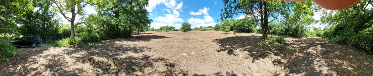 Après un hiver pluvieux, jusqu'à fin avril, et après la recherche d'une machine capable de broyer, type broyeur à marteau forestier, et enfin un bon labour, le verger est enfin près pour accueillir les plantations.
